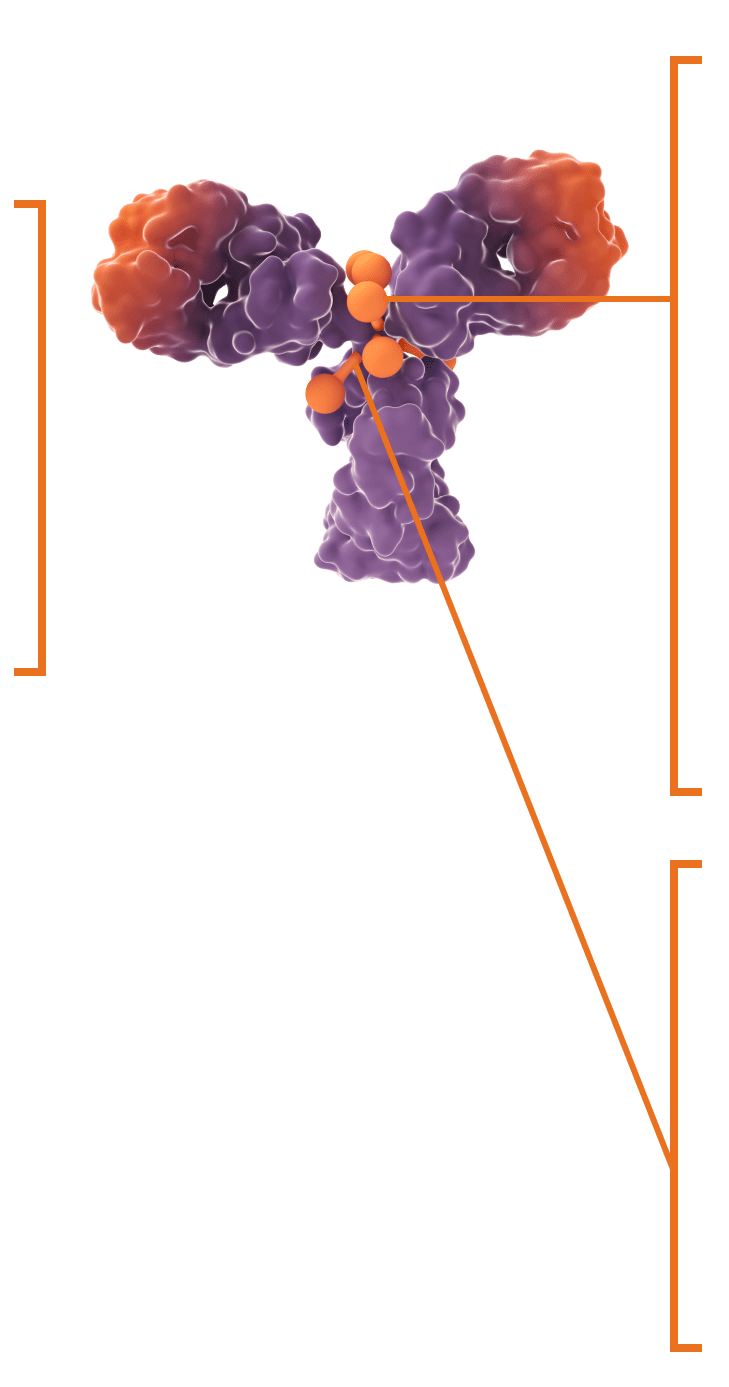 • Linker selectively cleaved by enzymes that are upregulated in tumor cells1,3